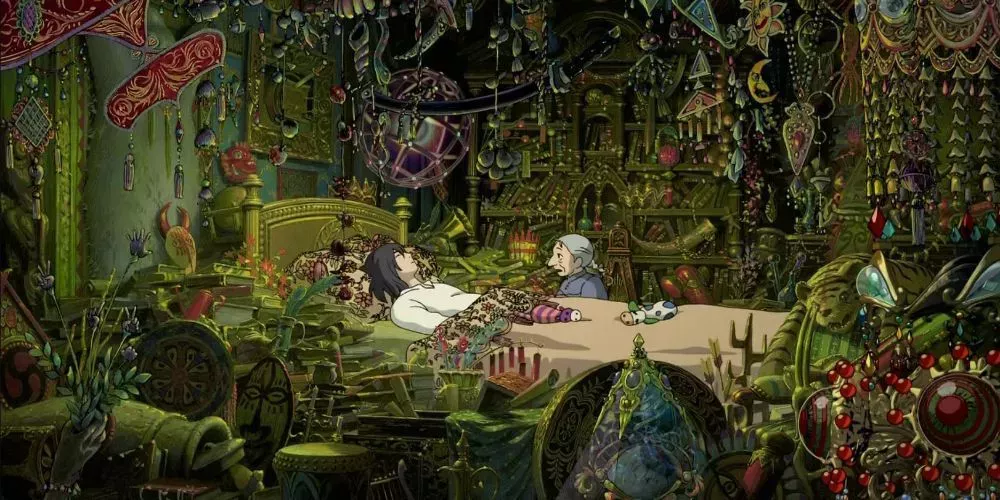 6 El desordenado dormitorio de Howl está lleno de baratijas y objetos encantados en El castillo ambulante de Howl