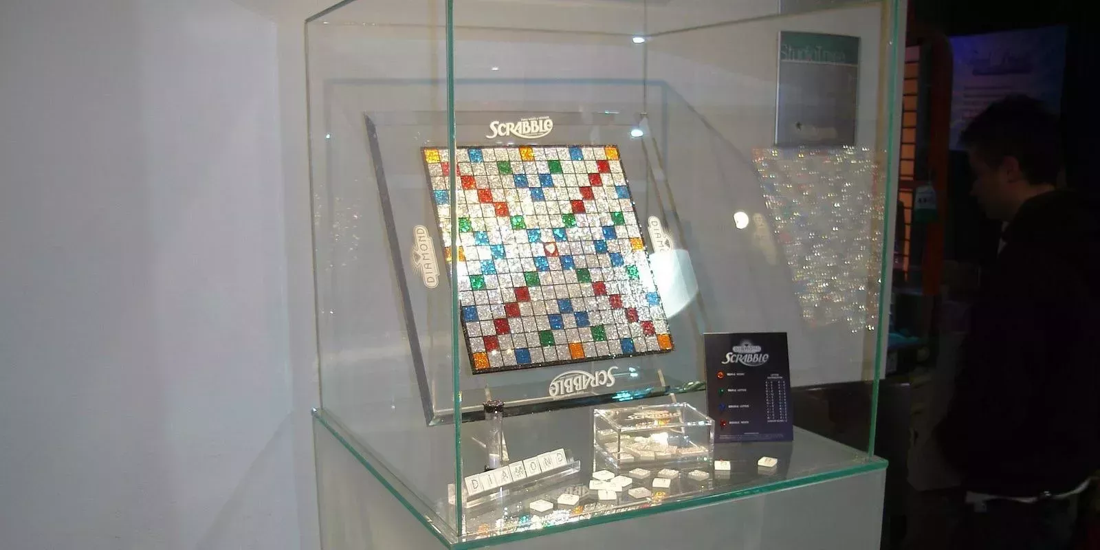 En términos tradicionales de aniversario de boda, el 60º aniversario es el aniversario del diamante. Para celebrar el 60º aniversario del popular juego de palabras Scrabble, la empresa australiana de cristal Swarovski creó una versión con incrustaciones de cristal del clásico tablero.