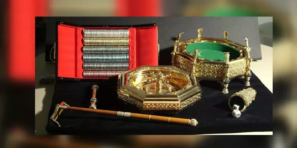 Otro de los artículos de la Colección Charles Hollander es un juego de ruleta con incrustaciones de oro. Cuenta con una pequeña rueda de ruleta, un cubilete, un juego de fichas, dos dados y un rastrillo de dados. El conjunto tiene 200 quilates de diamantes de colores, tres kilos de oro de catorce quilates y tres kilos de plata. No está claro el precio de venta exacto de uno de estos juegos de ruleta, pero dada la absurda cantidad de material valioso presente, es probable que valga bastante más de un millón de dólares.