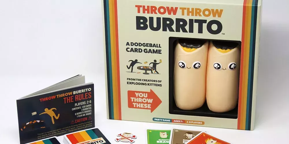 Normalmente, que un jugador lance las piezas del juego por la habitación a sus amigos sería una señal de que las cosas van mal en el juego. Sin embargo, Throw Throw Burrito, de Matthew Inman, de The Oatmeal, no solo indica a los jugadores que se lancen las piezas del juego entre sí, sino que lo tendrán más difícil para ganar si no lo hacen.