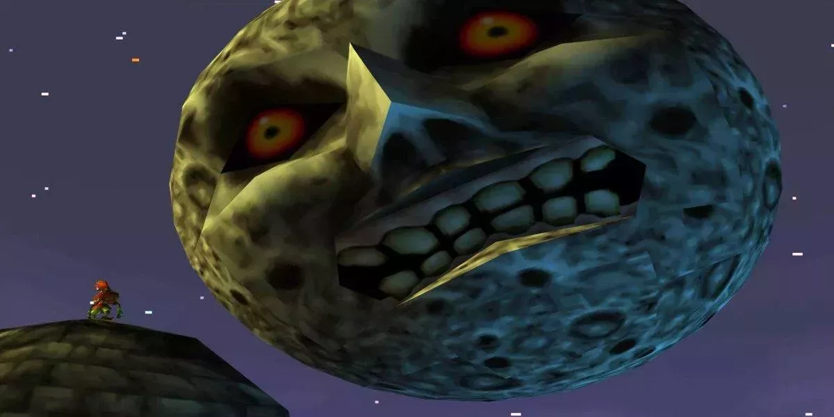 Majora's Mask de Nintendo 64 sigue siendo una de las entradas más memorables de la serie debido a su temática inusualmente aterradora. La lúgubre inevitabilidad de una luna horripilante que se estrella contra el mundo es mucho para asimilar, pero Majora se nutre del terror y el caos.