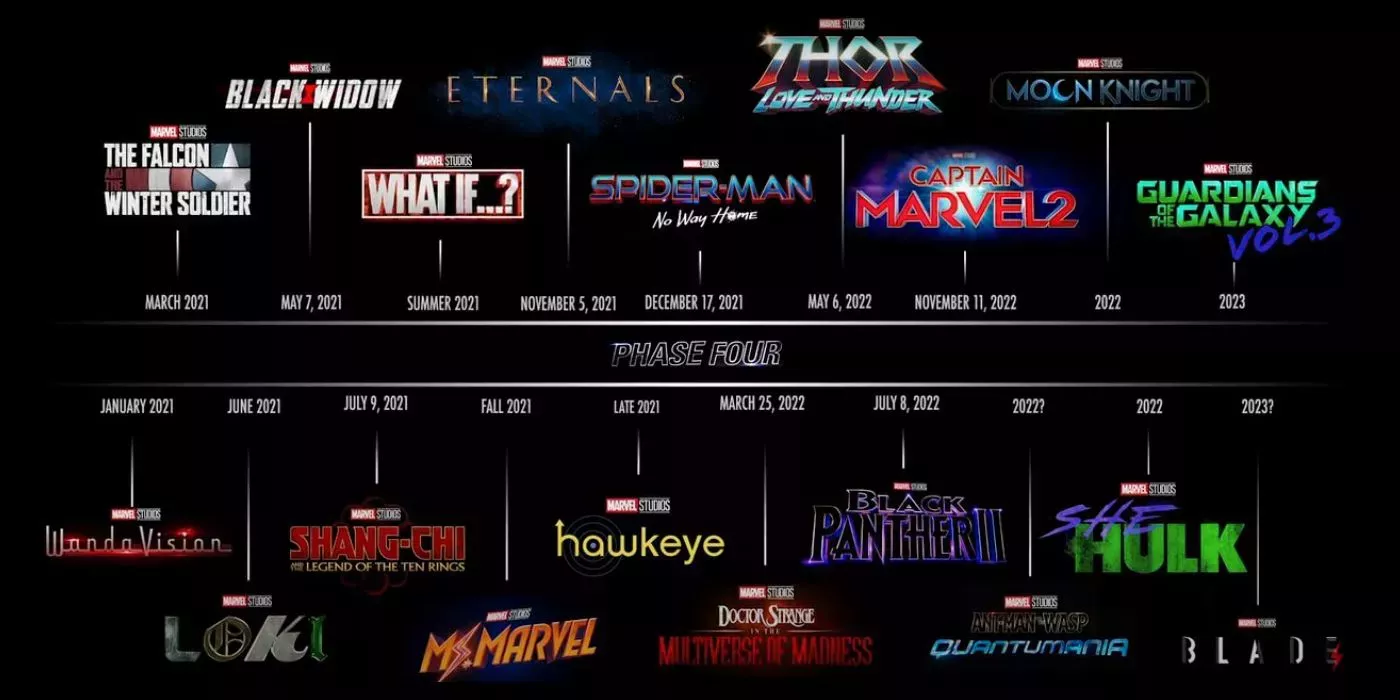 Marvel Studios también ha revelado los próximos estrenos de cine y televisión para 2022 y más allá, que completarán la cuarta fase del MCU. La agenda cinematográfica del estudio incluye los estrenos en 2022 de Doctor Extraño en el Multiverso de la Locura, Thor: Amor y Trueno y Pantera Negra: Wakanda Forever. Entre las futuras películas anunciadas están Las Maravillas, Guardianes de la Galaxia Vol. 3, Ant-Man y la Avispa: Quantumania prevista para 2023, y el teaser de Los Cuatro Fantásticos.