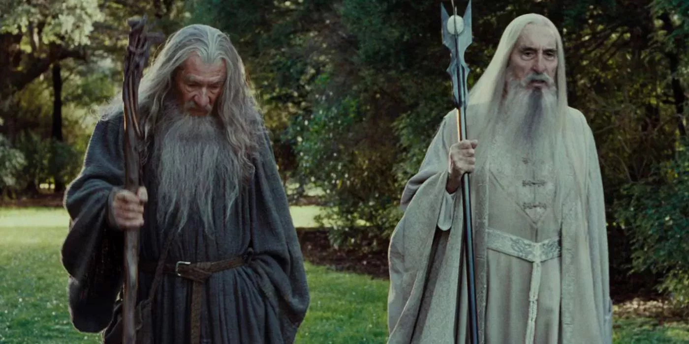 Siendo uno de los personajes más antiguos de El Señor de los Anillos, Saruman pasó a formar parte del grupo malvado de Sauron, sin que Gandalf lo supiera en un principio. Los dos tenían una larga historia como magos honrados, desarrollando una amistad en el camino. En la película, a la llegada de Gandalf a Isengard, parecía que los dos seguían respetándose mutuamente, pero eso cambió cuando salieron a la luz las maldades de Saruman.