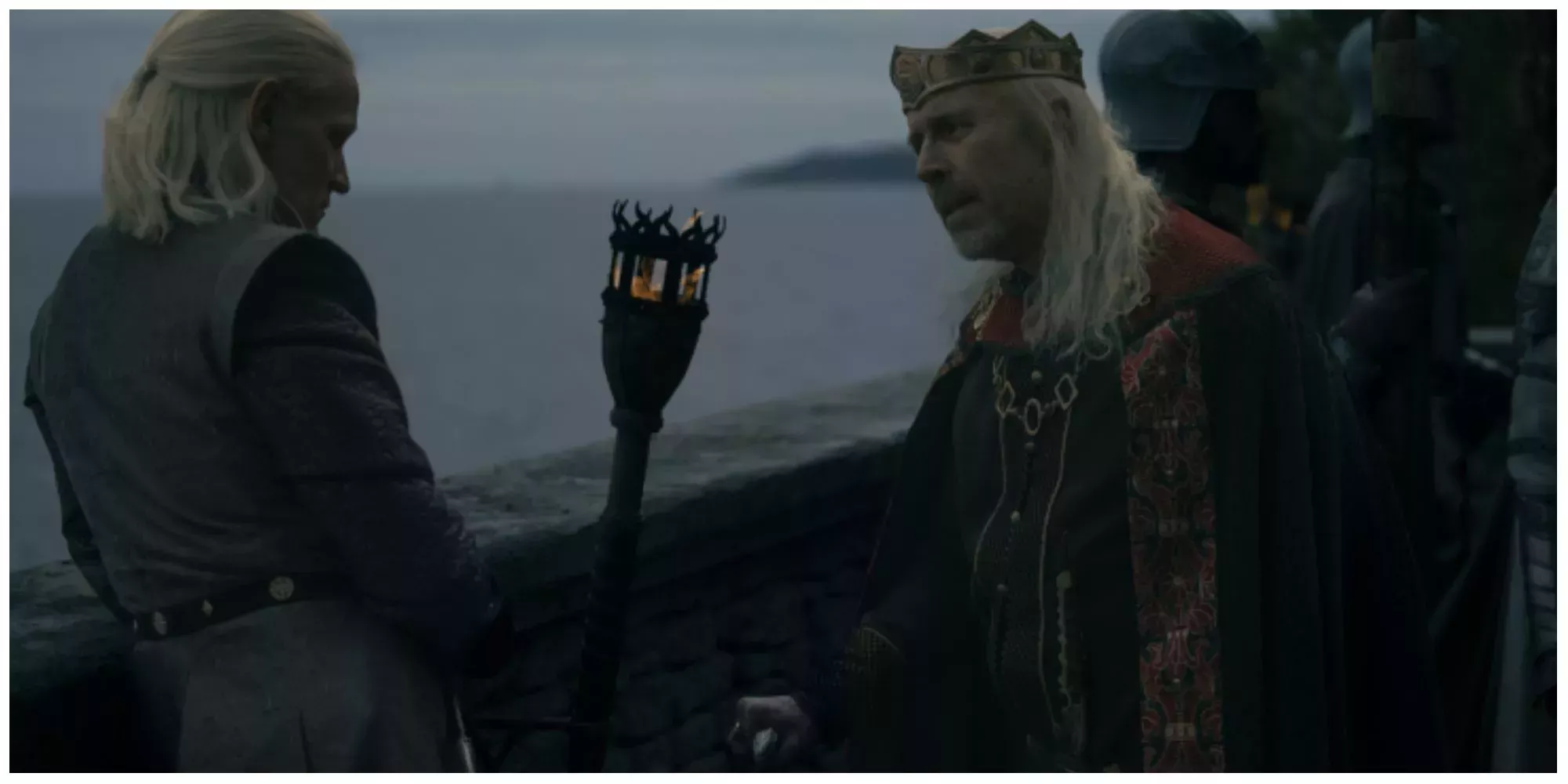 Lasalud de Viserys había ido empeorando progresivamente a lo largo de los ocho primeros episodios de La Casa del Dragón. A medida que se deterioraba y perdía el control de su familia, los fans empezaron a sentir más pena por él. A pesar de todo su dolor y tristeza, finalmente obtuvo su deseo en "El Señor de las Mareas" cuando su familia se reunió para cenar y aparentemente resolvió sus diferencias.