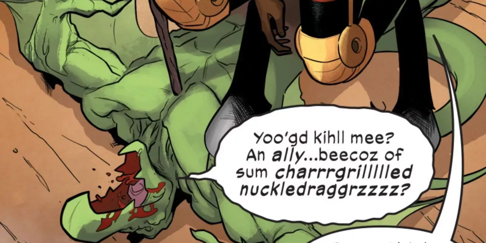Sin embargo, Sauron es más conocido por un Spider-Manmeme, en el que proclama con orgullo que la tecnología que ha desarrollado puede curar el cáncer. Pero no quiere curar el cáncer, sino convertir a la gente en dinosaurios. Es un momento divertidísimo, pero demuestra hasta qué punto Sauron es un fracasado. Sabe de lo que es capaz, pero realmente no le importa y no quiere hacerlo de todos modos.