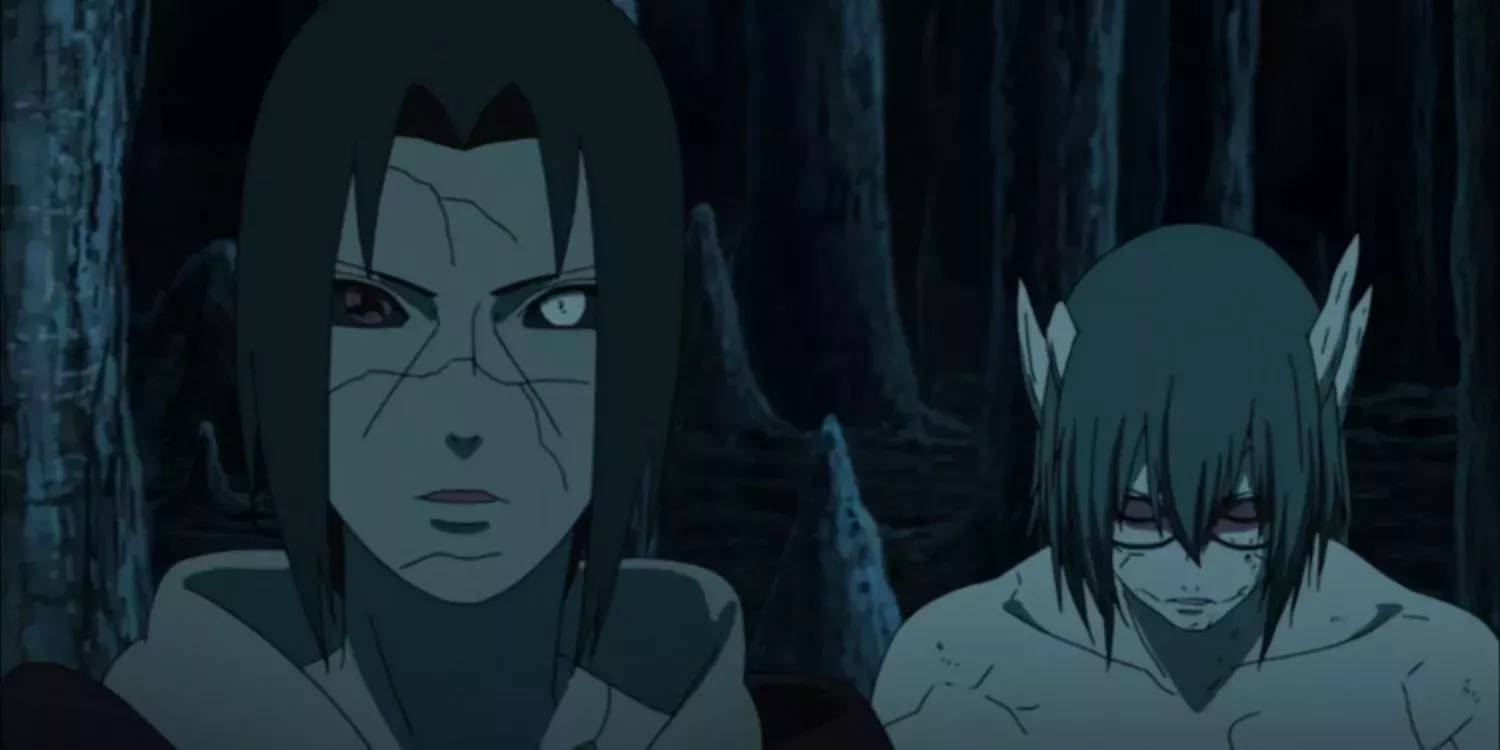 Itachi utilizó su Susanoo para destruir la serpiente, y luego selló a Orochimaru y todo su chakra con la Hoja Totsuka. Al hacerlo, también eliminó la Marca de Maldición que Orochimaru le había dado a Sasuke, que contenía una copia de la conciencia de Orochimaru. Itachi amaba a Sasuke más que a nada, y fue capaz de salvarlo del plan de Orochimaru justo antes de morir.