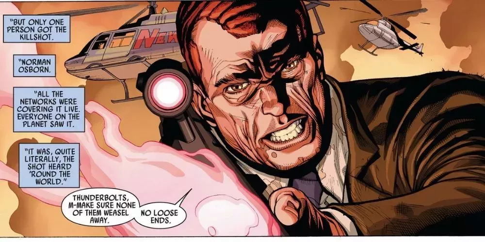 Tony Stark hizo todo lo que pudo para ganar en Civil War, incluyendo soltar en secreto a Norman Osborn contra los atlantes para que no interfirieran. Osb0rn cumplió muy bien con su deber y fue recompensado por Stark y puesto a cargo de los Thunderbolts, comenzando una nueva era del equipo de villanos, una que era básicamente ellos actuando como el Escuadrón Suicida de Marvel.