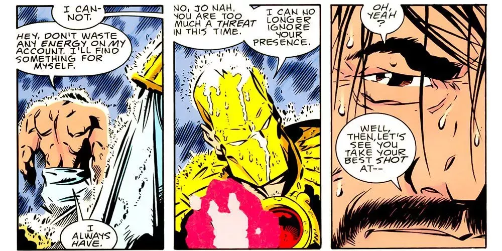 El Doctor Fate recurrió a los puñetazos para dominar a Wotan. Fate levantó a Wotan por encima de su cabeza, arrojándolo por una ventana hasta su aparente muerte. Al más puro estilo de los cómics, Wotan regresó al número siguiente.