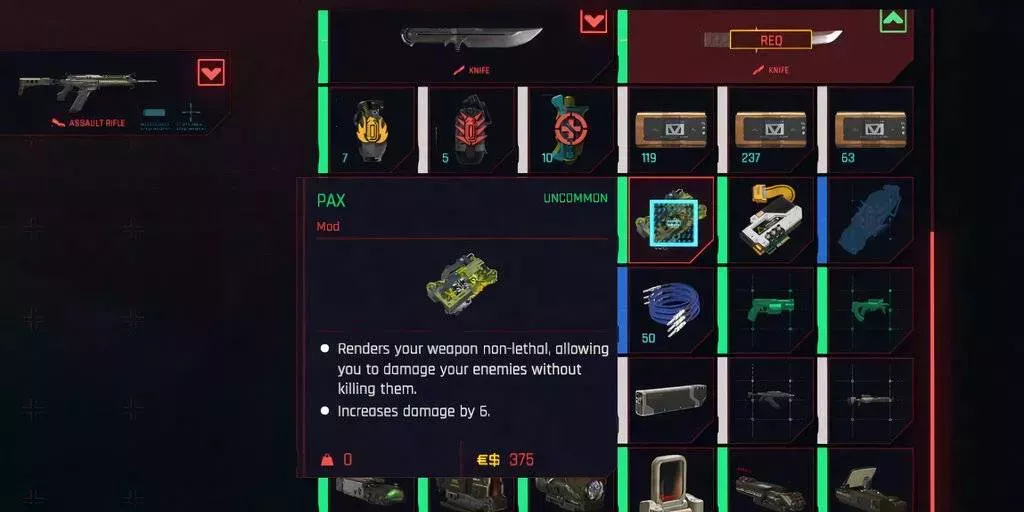 En Cyberpunk 2077, antes de la actualización 2.0, era muy común que un jugador tuviera grandes pilas de cualquier objeto arrojadizo o consumible que tuviera que usar en su barra de acceso directo. También era habitual ver a un jugador usar estos objetos arrojadizos a su antojo, recorriendo y lanzando todo lo que tenía en su inventario. En la versión 2.0 se decidió suprimir este sistema, muy divertido pero que rompía el juego.