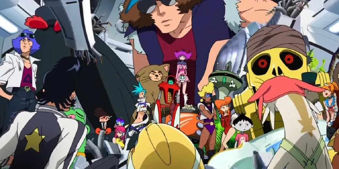 Sin embargo, el anime también juega con sus propias reglas cuando se trata de sus escandalosos impulsos satíricos. Algunos episodios son meditaciones sombrías sobre la soledad, mientras que otros ridiculizan ampliamente Mobile Suit Gundam. Es un enfoque caótico y desorientador de la narración que el público ama u odia.