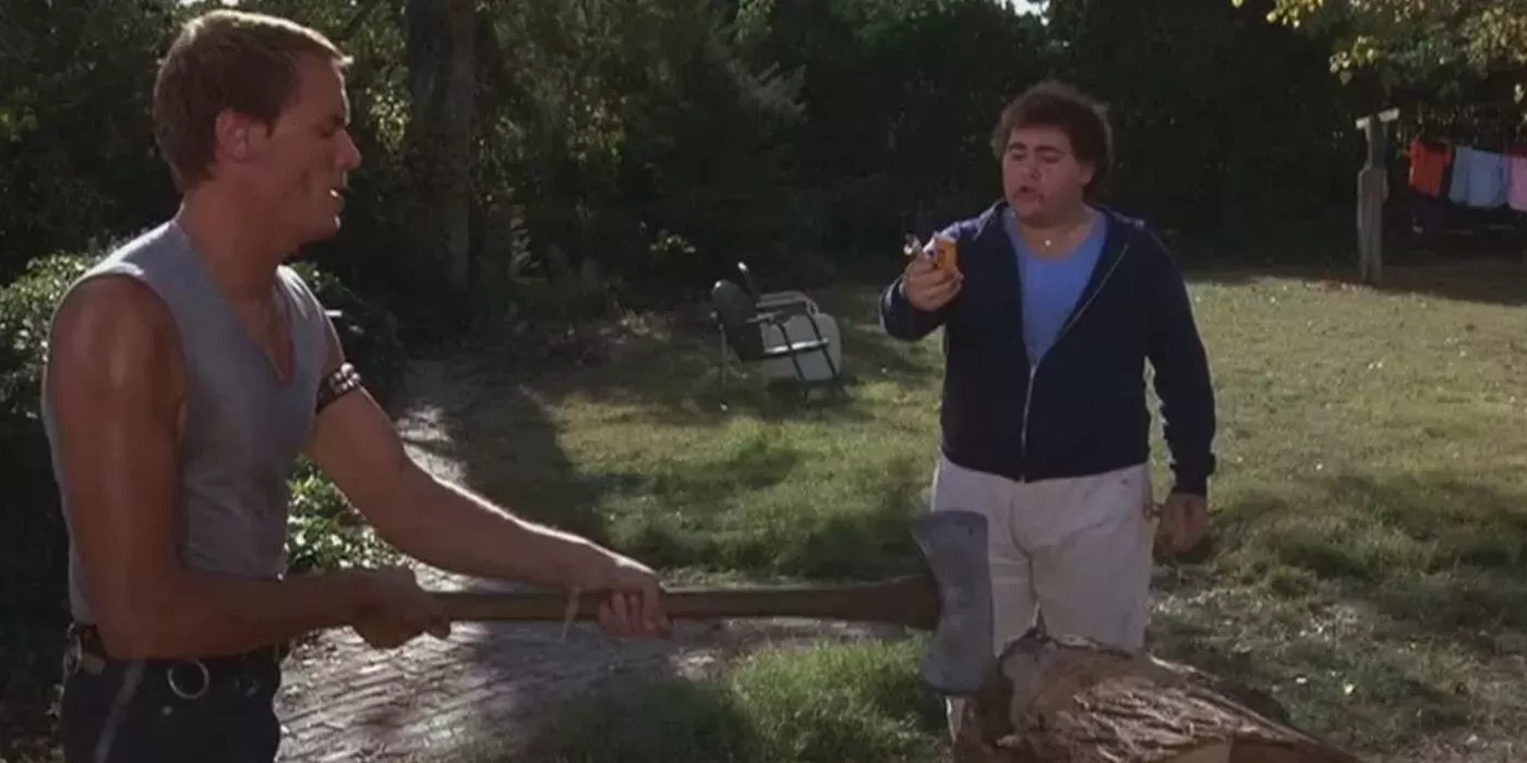 7/10 Joey Burns fue violentamente asesinado a hachazos por un campistaViernes 13: Un nuevo comienzo (1985)
