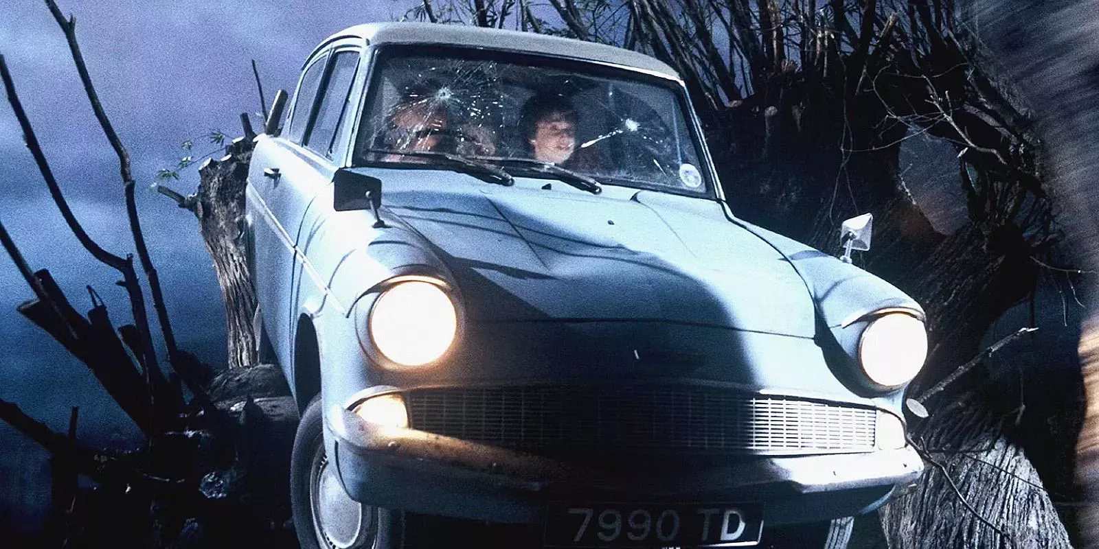 El Ford Anglia se desliza suavemente por los cielos mientras Harry y Ron intentan seguir el Expreso de Hogwarts hasta Hogwarts. El coche de Harry Potter también adquiere sensibilidad, lo que le confiere una personalidad descarada cuando lanza a Harry y Ron al suelo a su llegada al castillo.