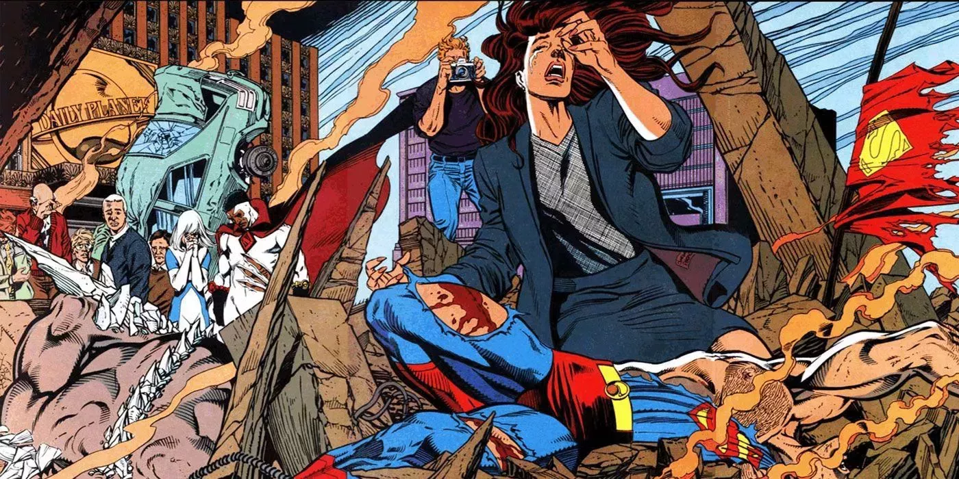 La Muerte de Supermanes una historia de gran influencia que puso a DC en una nueva dirección de destrucción y sustitución de sus iconos. Pasó por los cuatro títulos de Superman y la Liga de la Justicia de América, con creadores como Dan Jurgens, Louise Simonson, Roger Stern, Jerry Ordway, Jon Bogdanove, Tom Grummet, Butch Guice y otros. Es una historia divertida que ofrece a los lectores exactamente lo que anunciaba.