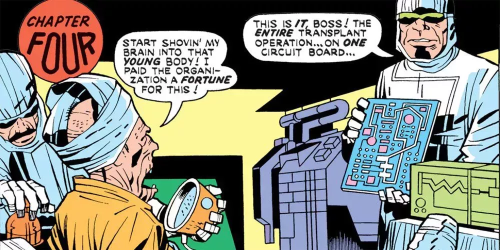 En el futuro distópico del OMAC de Jack Kirby : One Man Army Corps, la Cábala del Crimen perfeccionó el intercambio de cuerpos y mentes. A la élite corrupta le importaba poco la situación de los pobres, y la Secta ofrecía a los ricos la oportunidad de prolongar sus vidas. Para ello era necesario cambiar cerebros por cuerpos jóvenes, en forma y hermosos.