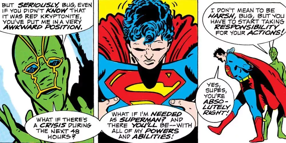 En el intercambio de cuerpos más divertido, Ambush Bug le dio a Superman un trozo pulido de kriptonita roja como regalo bienintencionado. Los dos intercambiaron sus cuerpos durante 48 horas, y Ambush Bug pasó a sustituir a Superman. Esto se correspondió con Kobra intentando robar el traje de teletransporte de Ambush Bug.