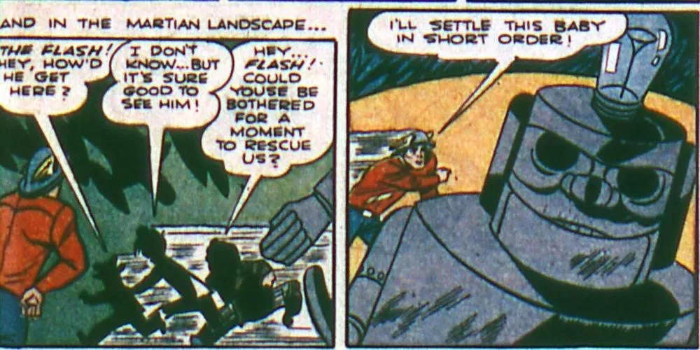 Salvo raras excepciones, la Edad de Oro de DC Comics no solía traficar con historias sobre extraterrestres. Pero "The Telltale Telescope" del All-Flash #20 de Fox y Martin Naydel mostraba al Relámpago en una aventura en la superficie de Marte. Pero el número tiene un giro para los lectores de DC.