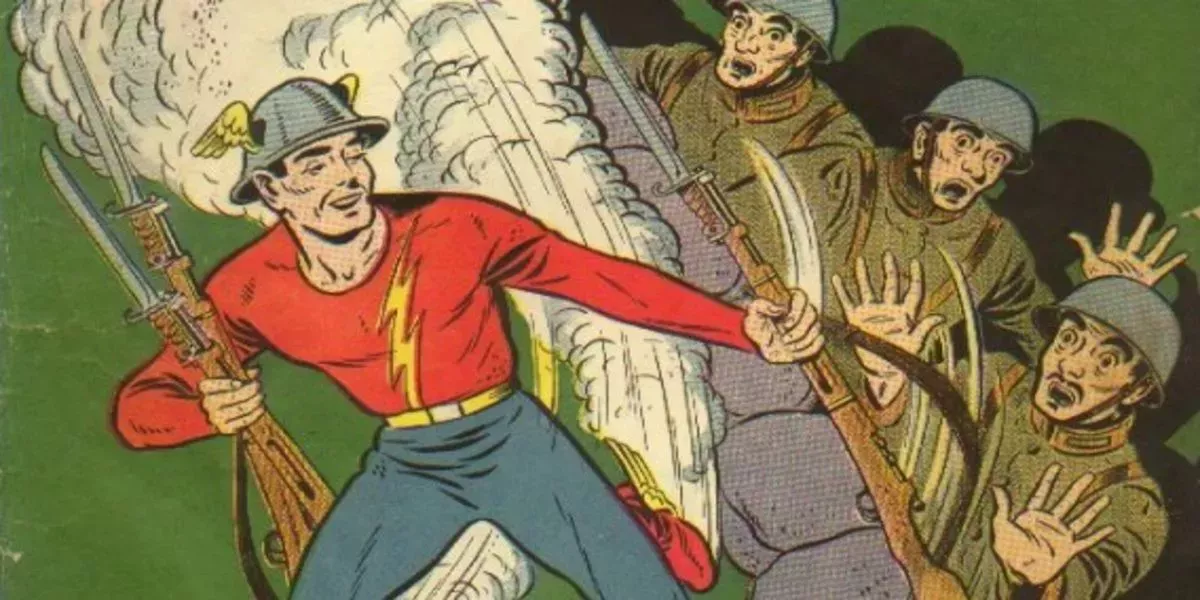 La guerra estaba en la mente de Estados Unidos en 1940, con tensiones en Europa entre las principales potencias del continente desde hacía años. En Flash Comics #12, de Fox y Hibbard, Flash consigue poner fin a una guerra entre países rivales en unas pocas páginas.