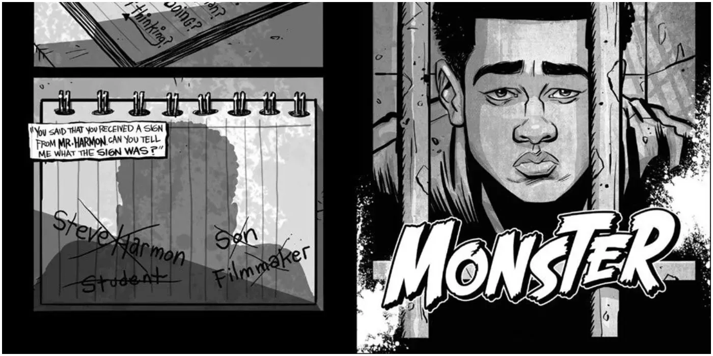 Estrenada en 1999, Monster cuenta la historia de un adolescente, llamado Steve Harmon, que es juzgado por su presunta participación en un asesinato. Mientras Steve está en la cárcel esperando su juicio, empieza a documentar su experiencia en forma de guión en su cuaderno. Escrito por Walter Dean Myers y dibujado por Christopher Myers, Monstruo ha pasado a recibir muchos elogios de la crítica e incluso fue nominado al National Book Award en 1999. En 2018, Monstruo fue adaptado en una película original de Netflix que fue dirigida por Anthony Mandler.