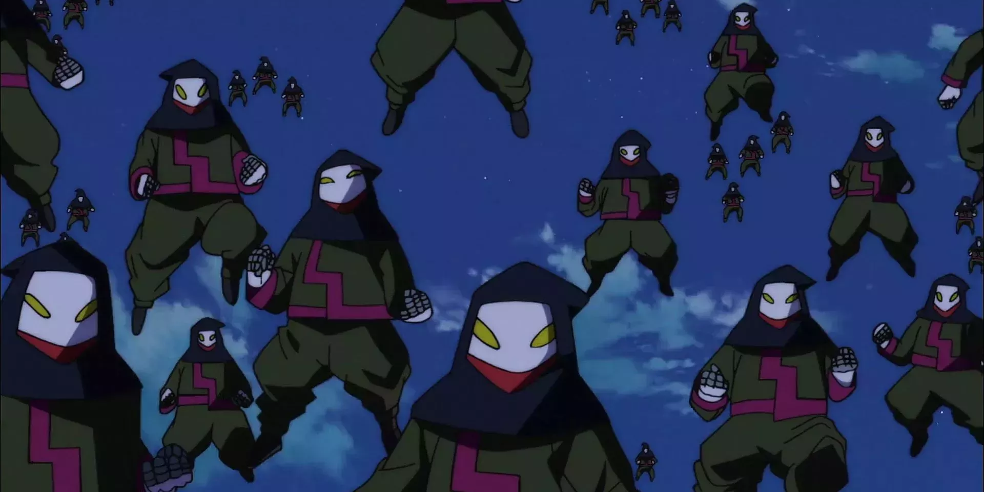 El Universo 9 se ve lamentablemente superado por los esfuerzos combinados de Goku y Frieza, pero estos asesinos sin nombre obtienen al menos algunos puntos por su estilo. Los crípticos trajes de capa que llevan estos asesinos les ayudan a camuflarse en su entorno, a permanecer uniformes entre ellos y también a aplicar la intimidación a sus oponentes. Sólo eligen los objetivos equivocados.