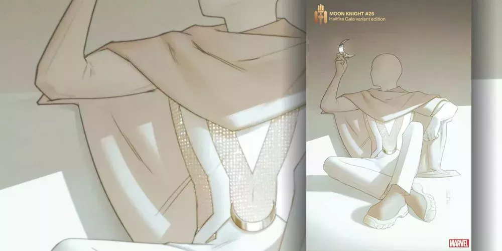 Moon Knight fue una incorporación sorpresa a la lista de la Gala Hellfire, pero sin duda ha estado a la altura de las circunstancias en lo que a moda se refiere. Moon Knight es conocido por sus conjuntos totalmente blancos, y a menudo luce sofisticados trajes en su vida cotidiana. Su look para la Gala toma elementos de su estilo habitual, pero le da un toque especial.