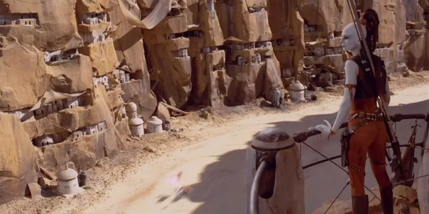 LaAmenaza Fantasma tiene el mayor número de miniaturas de todas las películas de Star Wars. El estadio era también una maqueta gigante, que capturaba la polvorienta suciedad del entorno desértico de Tatooine y el gran alcance del evento de carreras de vainas. El evento de carreras de vainas es donde un joven Anakin Skywalker demuestra por primera vez todo el potencial de sus habilidades latentes en la Fuerza.