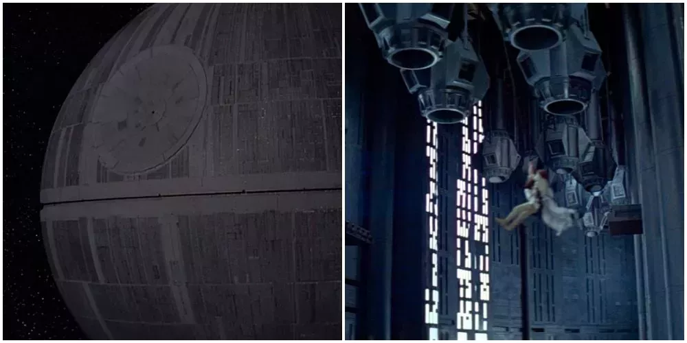 La infame Estrella de la Muerte se hizo a partir de una combinación de pinturas al óleo de gran detalle, piezas de escenografía para la perspectiva y modelos físicos a escala. El uso de las tres cosas contribuyó a la ilusión de que la enorme estación de combate existe realmente.