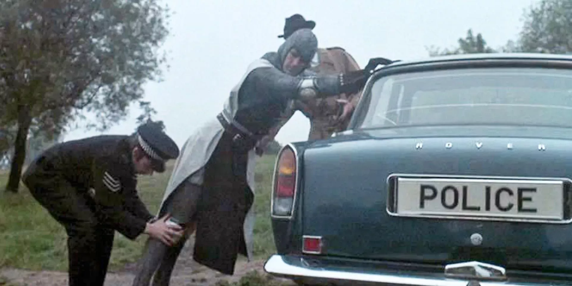 5/10 El rey Arturo y sus caballeros son detenidos por policías del siglo XXMonty Python y el Santo Grial