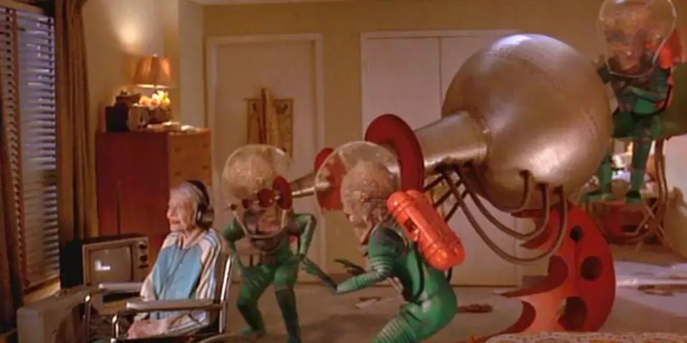 4/10 Los alienígenas invasores explotan al escuchar una aburridísima canción de opereta¡Mars Attacks!