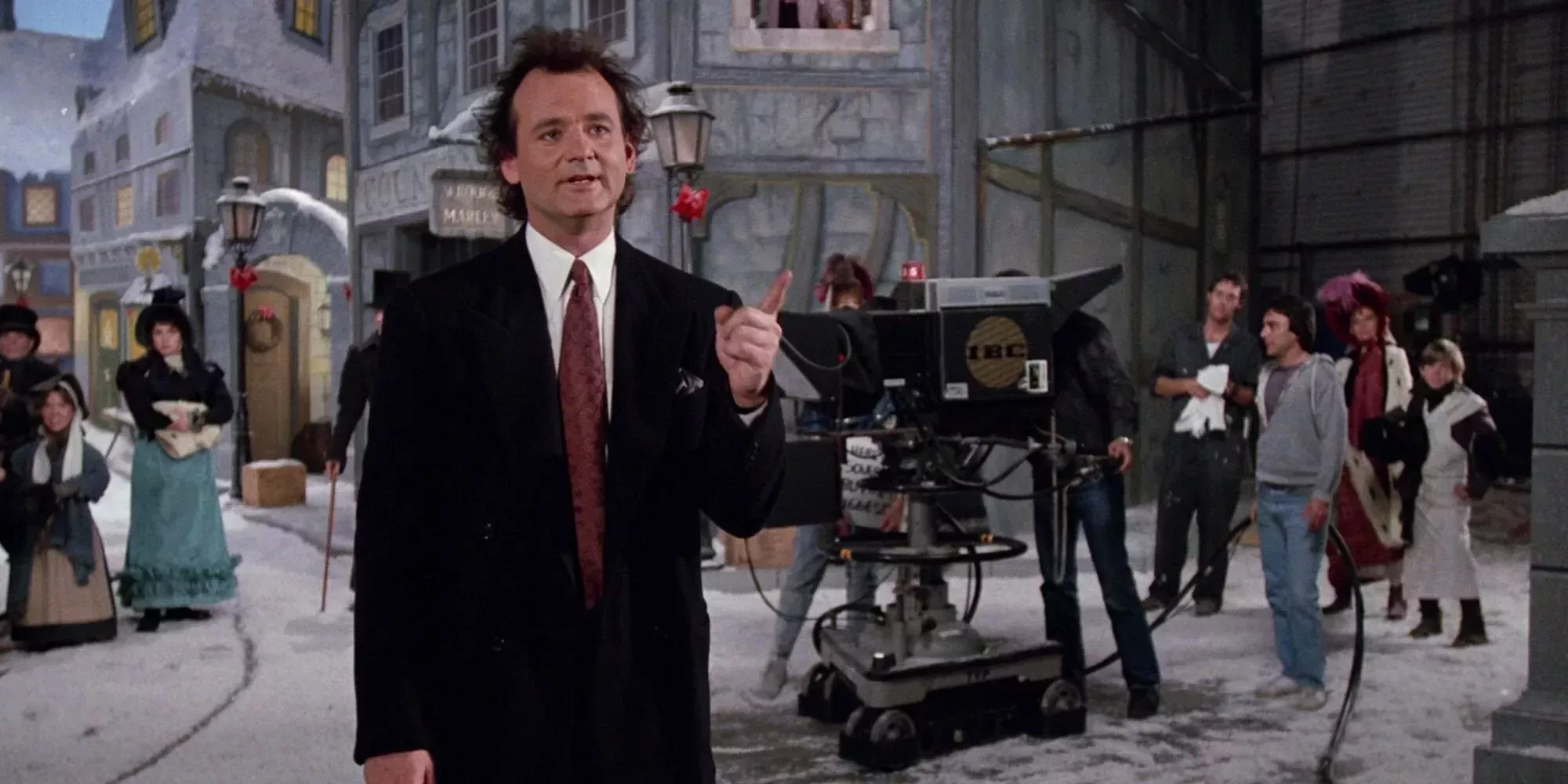 Scrooged, una adaptación moderna de Cuento de Navidad de Charles Dickens , cuenta la historia de Frank Cross (Bill Murray), que representa en directo Cuento de Navidad para la televisión. Recibe la visita de tres fantasmas que le enseñan lo equivocado de su proceder, y Frank cambia para mejor. Al final, Frank interrumpe la emisión para disculparse y proclamar su nuevo aprecio por la vida.