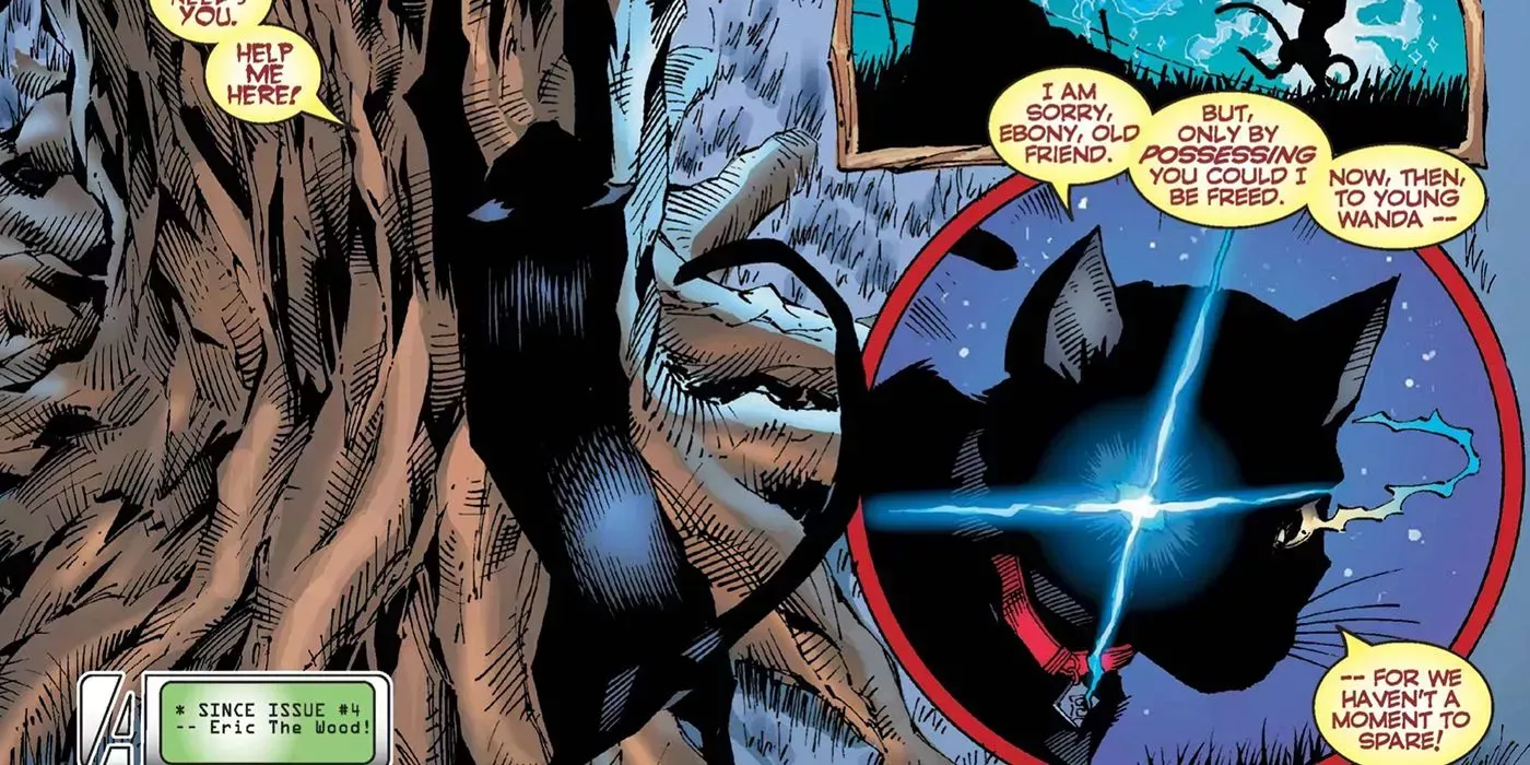 Ébano es el felino familiar de Angela Harkness, una de las brujas más consumadas de Marvel y, en ocasiones, mentora de la Bruja Escarlata. La pequeña gata negra parece modesta, pero puede transformarse en un feroz gato salvaje gigante en caso de apuro. La Ebony original tuvo un triste final cuando Angela tuvo que sacrificarla para un hechizo.