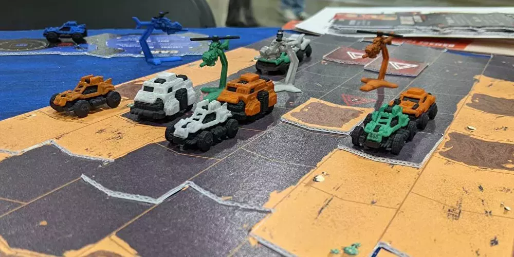 Thunder Road fue un juego de mesa para 2-4 jugadores creado en 1986. Basado libremente en Mad Max, Thunder Road: Vendetta revitalizó el juego e introdujo nuevos elementos al clásico favorito. En esta iteración de Thunder Road , los jugadores controlaban coches pequeños, medianos y grandes, así como helicópteros para cuando los coches sufrían grandes daños.