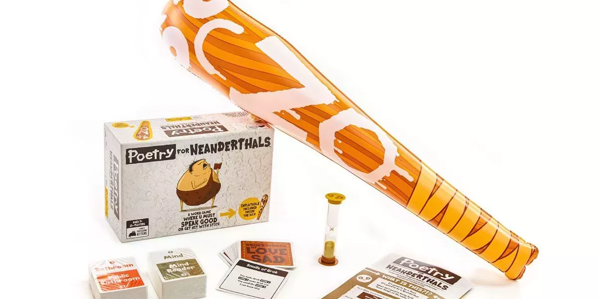 Poetry For Neanderthals es una diversión caótica para personas de todas las edades. En este juego por equipos, los jugadores reciben tarjetas con frases, personas, lugares o cosas, y tienen que describir la tarjeta formando un poema en el tiempo asignado.