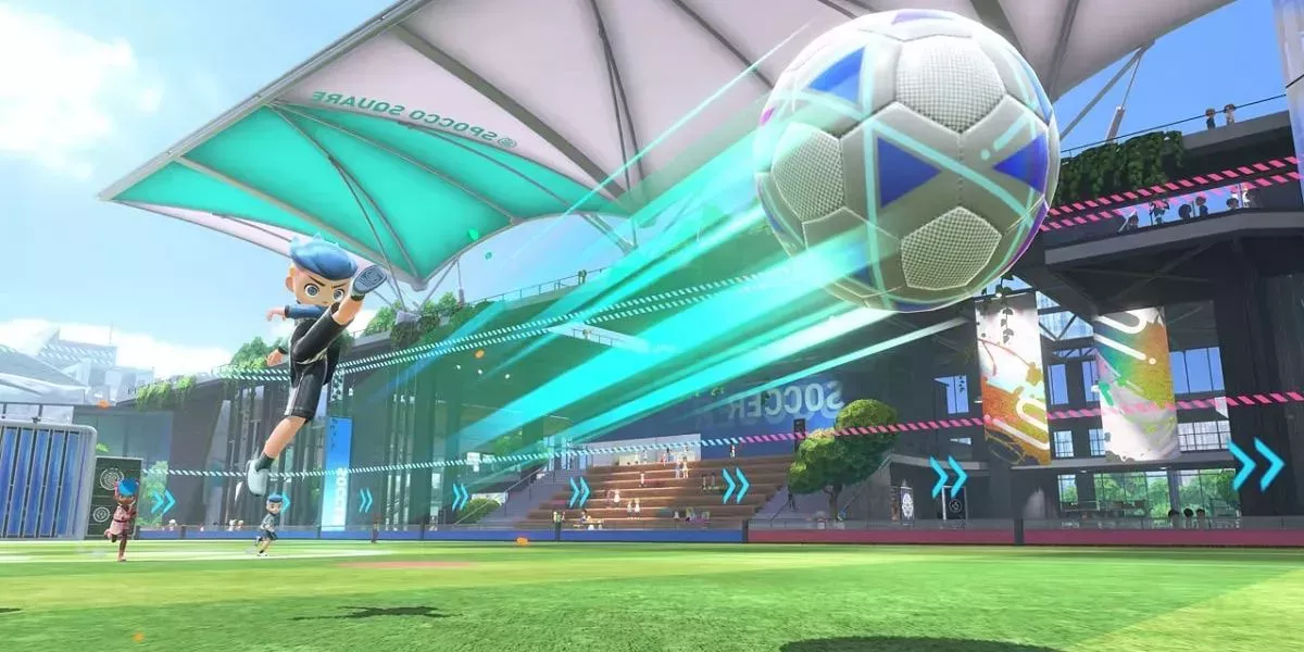 En Nintendo Switch Sports, una de las opciones es el fútbol. La experiencia de juego se describe como una réplica de Rocket League sin los coches. En su lugar, los jugadores pueden jugar con el Mii que elijan. En lugar de impulsarse por el campo cerrado, cada jugador tiene una barra de resistencia para gastar energía cuando sea necesario. Los sensores de movimiento permiten a los jugadores golpear el balón con precisión y chutarlo en casi cualquier dirección.