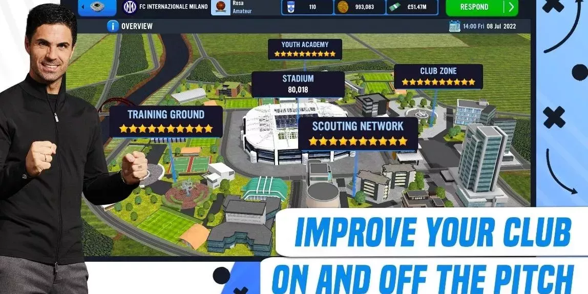 Los jugadores pueden crear su propio club y desarrollar su estadio y sus instalaciones. La versión permite a los jugadores gestionar a los jugadores en el campo de entrenamiento y en el terreno de juego, y los entrenadores en ciernes pueden analizar el rendimiento de su equipo con estadísticas precisas. Se ha descrito como "un club en tu bolsillo" y ofrece a los aficionados al fútbol un control total sobre todas las decisiones importantes.