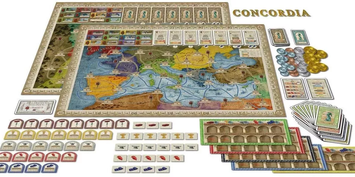 Los aficionados al subgénero de la gestión de recursos suelen hablar maravillas de Concordia. Basado en la historia real del Imperio romano, Concordia agiliza los elementos de recolección de recursos, comercio y construcción popularizados por CATAN, junto con su sistema de puntos de victoria.