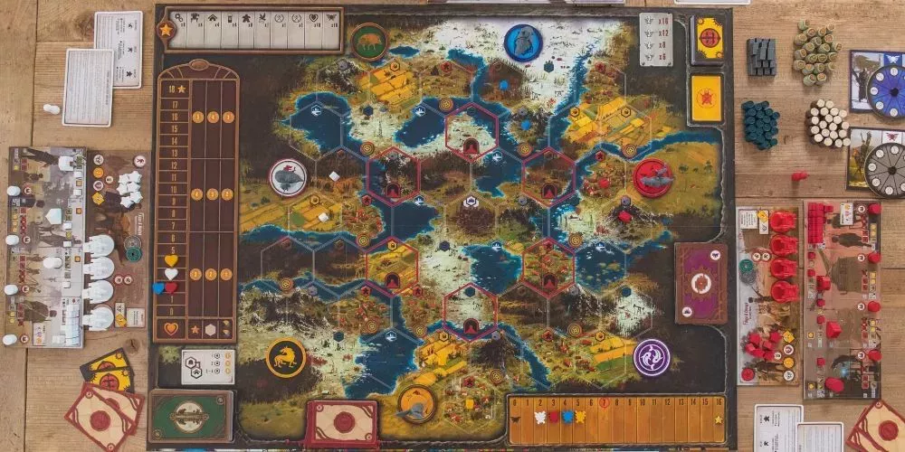 Muchos juegos de gestión de recursos contienen importantes mecanismos de construcción de motores, y Scythe es uno de ellos. Scythe está ambientado en una versión alternativa de la Europa del Este de los años 20, con mechs diesel-punk y fuertes conflictos polÃticos.