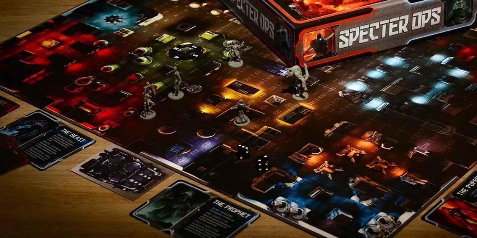 Specter Ops es un juego de movimiento oculto en el que un jugador de la mesa se mueve en secreto por el mapa mientras todos los demás jugadores tratan de encontrarlo. El jugador oculto tiene una hoja de papel que muestra el tablero y un bolígrafo para registrar sus movimientos. Cuando el jugador oculto es visto, pone su miniatura en el tablero, pero puede volver a esconderse al siguiente turno huyendo. A medida que avanza Specter Ops, el juego se vuelve más y más intenso, ya que los jugadores que están cazando siguen concentrándose en la ubicación del jugador oculto.