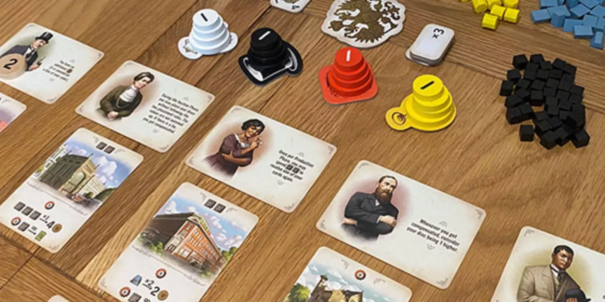 Los jugadores gastan sus beneficios en subastas de cartas, y cuando ganan nuevas cartas (fábricas, minas, empresas, etc.), pueden utilizarlas para procesar materias primas o producir bienes, generando más beneficios. Al final del juego, los jugadores poseerán un vasto imperio de filiales y fábricas con enormes márgenes de beneficio, realmente la mejor grasa para este motor es el sudor de la clase trabajadora.