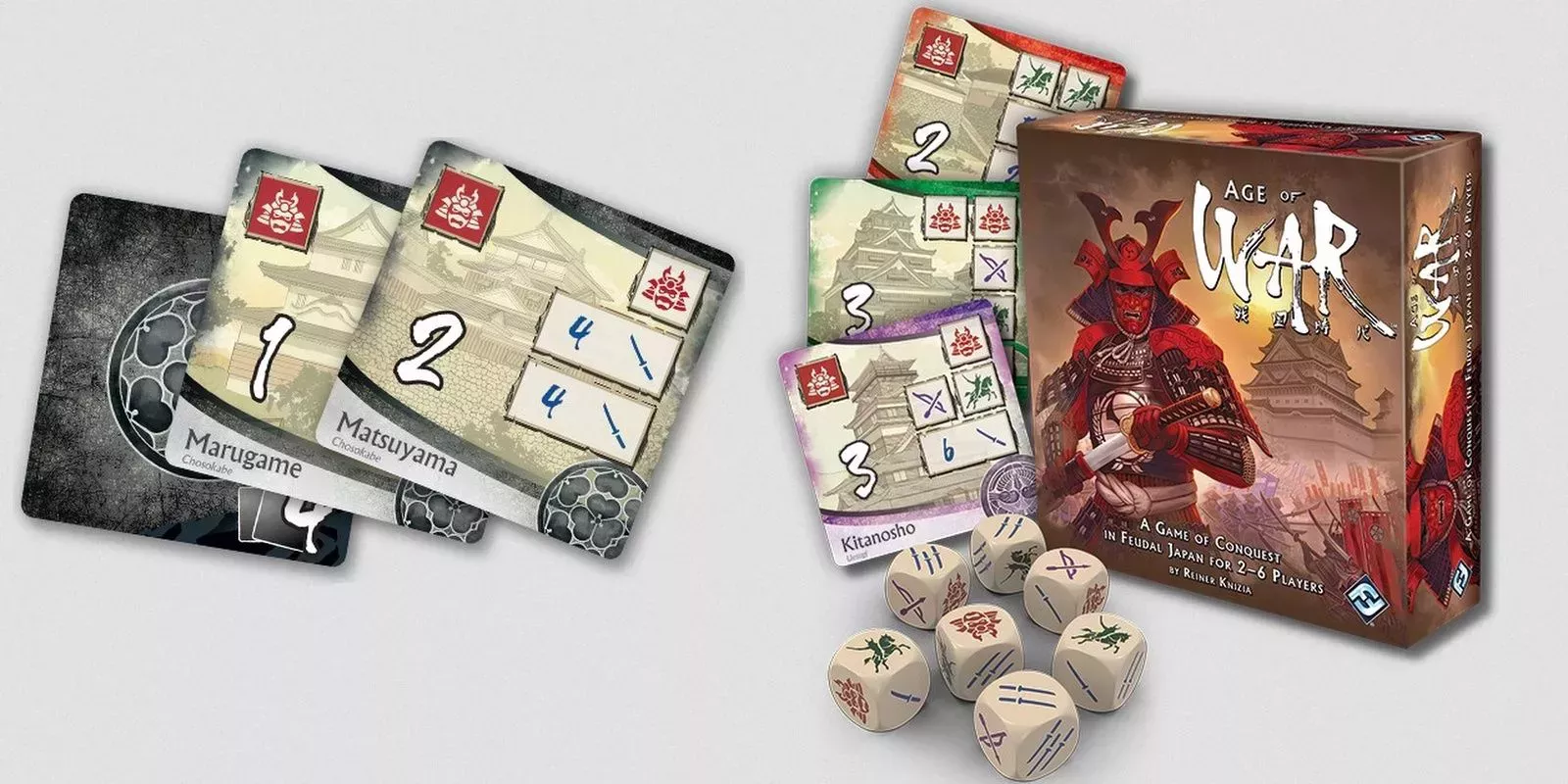 Age Of War es un sencillo juego de dados para 2-6 jugadores. El juego se lanzó originalmente en 2006 como Risk: Express, pero las reglas y las cartas se modificaron ligeramente para equilibrar mejor el juego en su versión de 2014. En Age of War, los jugadores intentan conquistar territorios y coleccionar conjuntos de cartas.