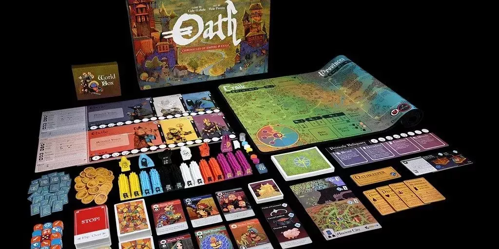 Las estrategias que los jugadores utilicen para ganar poder y llevar adelante sus agendas determinarán las actitudes de los gobernantes del reino durante generaciones, obligando a los futuros jugadores a enfrentarse a los resultados. Oath puedejugarse en solitario o en grupo, y no es necesario reiniciar el juego entre distintos grupos, aunque sí se puede reiniciar para empezar de nuevo desde cero.