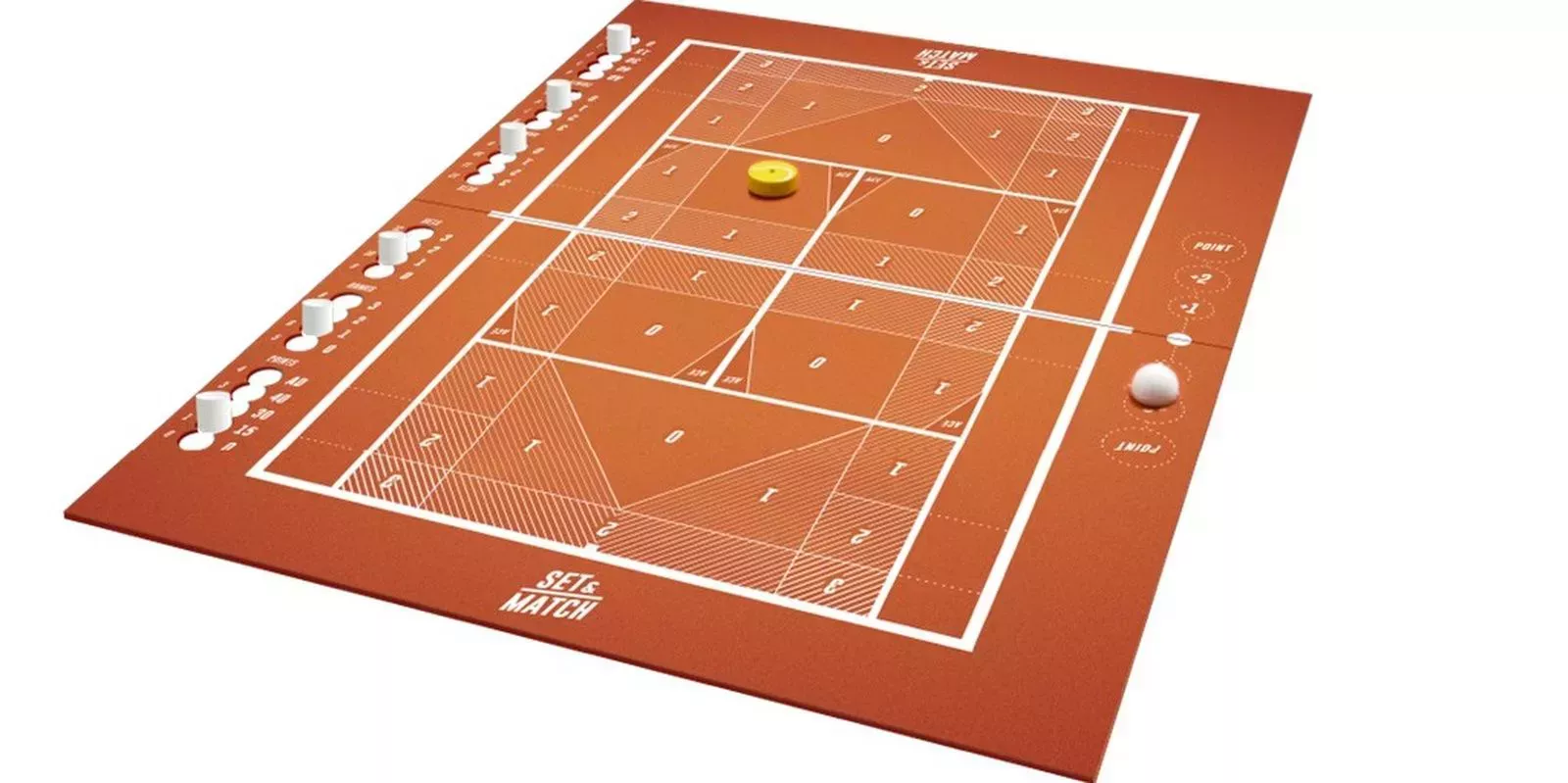 Los juegos que implican la manipulación de objetos mediante el giro, el apilamiento o el equilibrio se denominan "juegos de destreza" y la mayorÃa de ellos son más divertidos con más jugadores en la mesa. El juego Set & Match está diseñado especÃficamente para dos jugadores, ya que hacen girar un disco con una pelota de tenis de un lado a otro, intentando conseguir el punto. Al principio, el juego es difÃcil de entender, pero después de unas cuantas jugadas, los jugadores pueden volear de un lado a otro como profesionales. Set & Match es único, ya que combina un juego deportivo con un juego de destreza de una manera que encaja perfectamente con el tema.