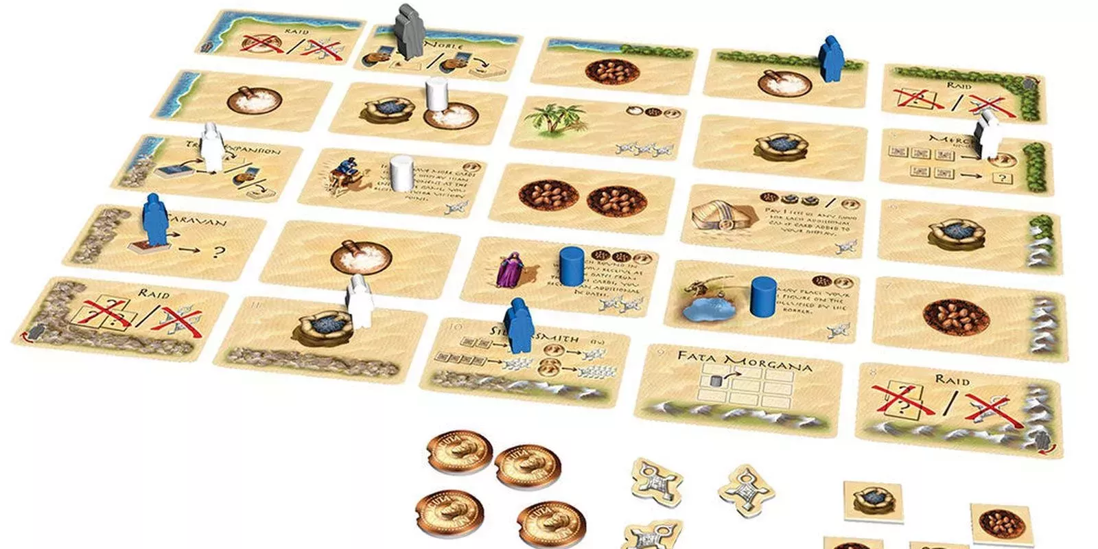En el juego Targi, cada jugador realiza cinco acciones por turno de una forma muy singular. Los jugadores colocan sus tres trabajadores en diferentes espacios a lo largo del borde de una cuadrÃcula y realizan las acciones en esos espacios y las acciones en los espacios donde se cruzan sus trabajadores. Esto crea un escenario que quema el cerebro en el que cada jugador debe pensar qué acción quiere hacer, qué acción quiere hacer después y si esas acciones se cruzarán con otra acción útil. Todo el juego es tenso, despiadado y muy divertido.