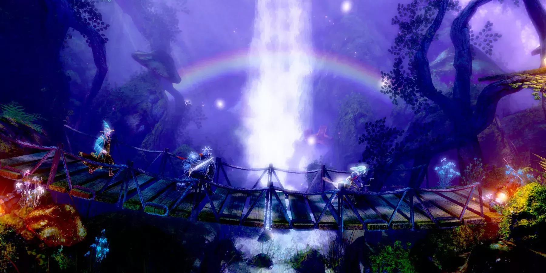 Trine Enchanted Edition es el primer juego de una serie de cuatro de Frozenbyte, todos ellos muy recomendables. El juego no solo es bonito, sino que tiene agradables puzles basados en la fÃsica que dependen de la cooperación entre los tres personajes del juego.