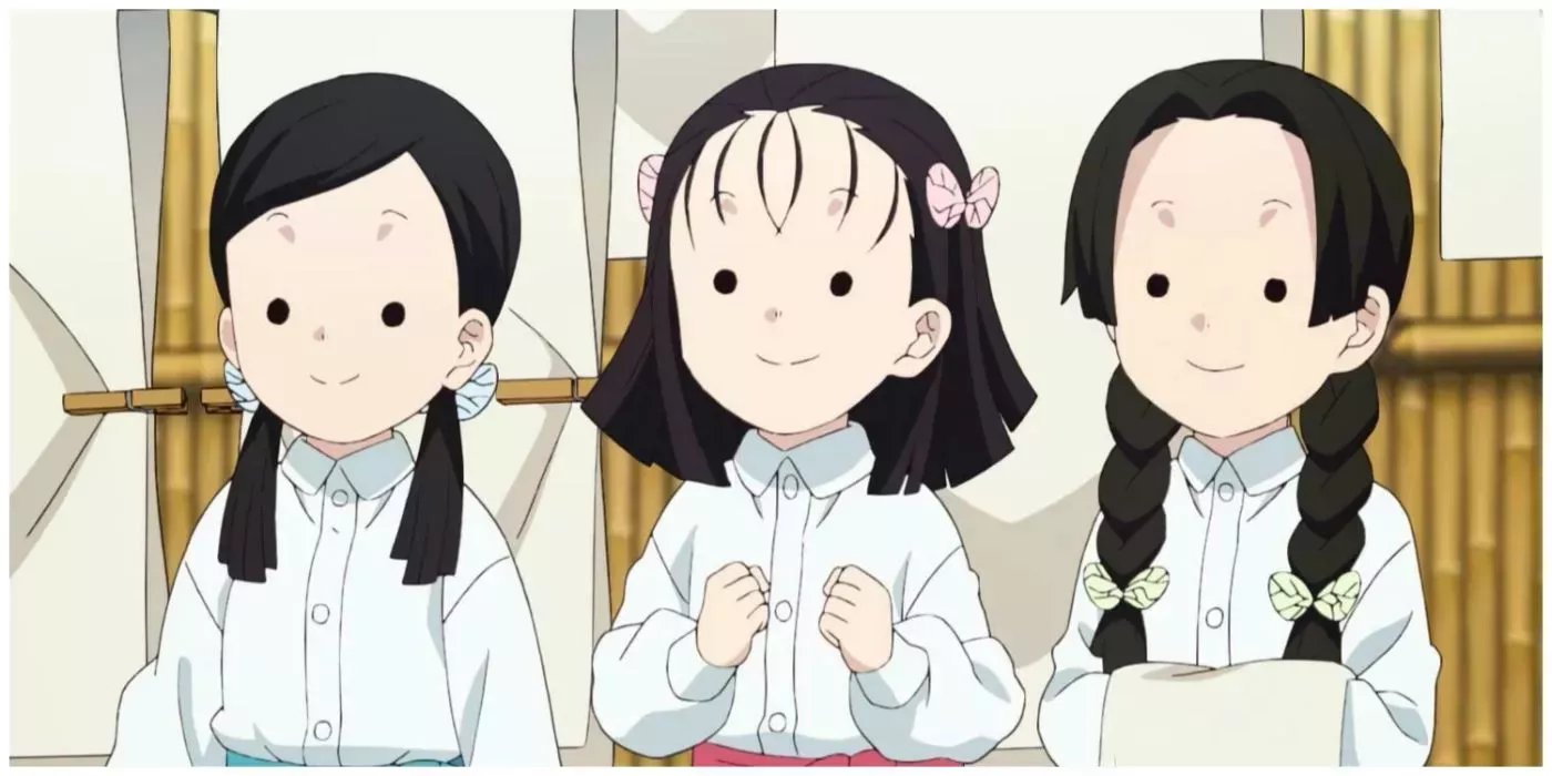Sumi, Kiyo y Naho son las tres chicas mariposa que anteriormente ayudaron a entrenar y cuidar de Tanjiro y sus amigos. Mientras Tanjiro, una vez más, se recupera en la Mansión de las Mariposas, las tres mariposas sin alas velan por él.