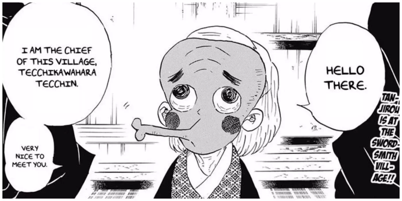 Uno de los aldeanos que más llama la atención es el jefe de la aldea Swordsmith, Tecchin Tecchikawahara. Siendo la persona más pequeña de la aldea, no le falta personalidad con sus comentarios directos y su prepotencia.