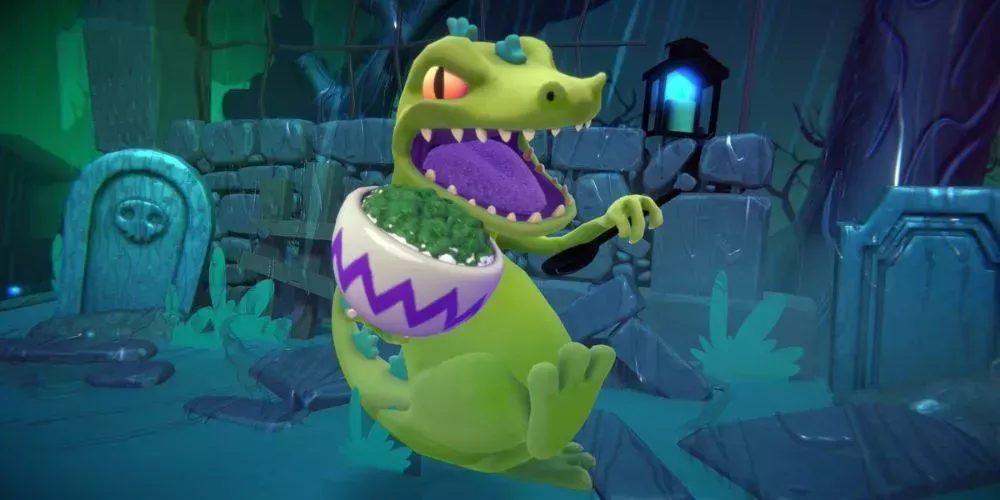 El kaiju gigante de Rugrats, Reptar, entra pisando fuerte en la arena de All-Star Brawl con poderes que derribarÃan a los enemigos más poderosos. Aunque no es tan enorme como aparece en Rugrats, Reptar sigue siendo el más grande y lento de la lista.