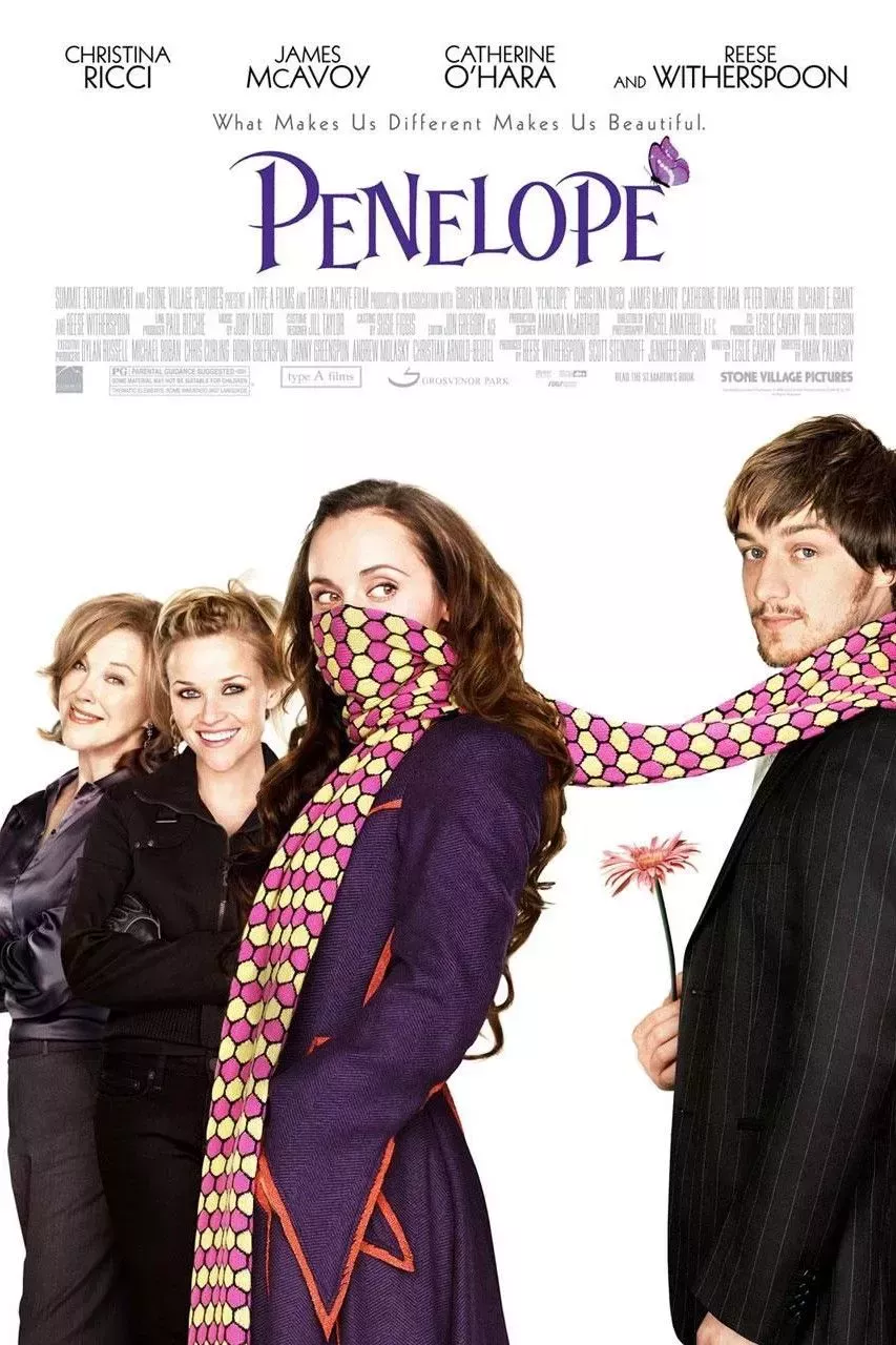 Penélope es un cuento de hadas moderno con grandes problemas como una bruja vengativa, una maldición familiar y una transmogrificación obstinada. Penélope nace en el seno de una familia adinerada conocida por su patrimonio, sus miembros a la moda y su reputación en la comunidad. Ella complica su estatus porque nace con una nariz grande debido a los pecados que su antepasado cometió contra una bruja.