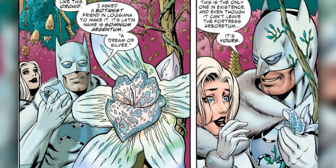 Una vez más enfrentando el frío extremo, Batman se pone el traje blanco de invierno (el nombre real nunca se menciona) cuando visita la fortaleza de la soledad de Superman en la serie The Widening Gyre. Se puso el traje mientras llevaba a Silver St Cloud a una gira, lo que finalmente lo llevó a proponerle matrimonio.