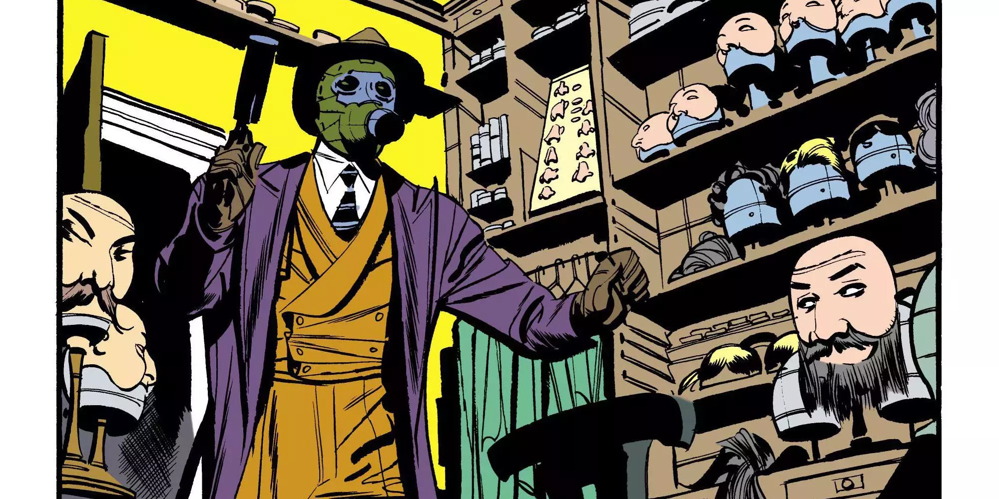 Cuando Wesley Dodds decidió luchar contra el crimen como Sandman, decidió utilizar una máscara de gas para cubrir su rostro. Esto tenía un doble propósito para el justiciero de la Edad de Oro. La máscara protegía a Sandman del gas somnífero que utilizaba para someter a los delincuentes, pero también recordaba los horrores de la guerra química utilizada durante la Primera Guerra Mundial.