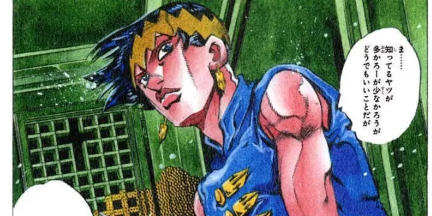 En el manga, sin embargo, tiene al menos tres; uno a cada lado del pecho y otro en la cremallera. Este elegante traje, unido a su peinado reconocible al instante, le convierte en uno de los fashionistas con más clase de Jojo.